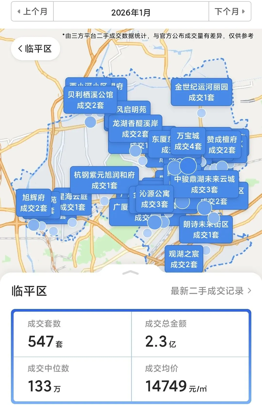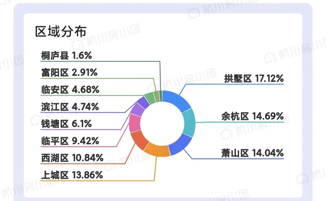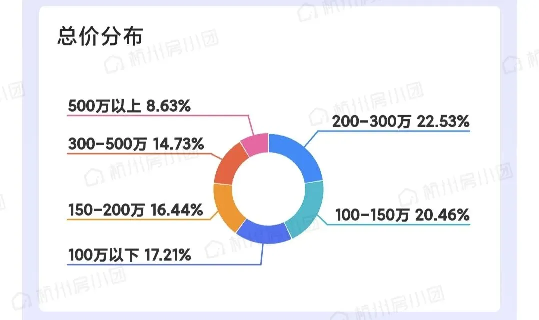 临平二手房销量排名前十的小区可以看出二点,1.地理位置都很方便;2.总价较低。因此咱们的刚需客户还是多余改善客户的。 新房1月份不理想,才成交了209套,相比上月少了一倍多,和二手相比也是相差甚远。从整个杭州的成交榜也能看出,新房才成交2745套和二手的5437套。1月份成交客户都是着急入住的,不想等房朋友。 下面是整个杭州的分布图,临平成交量占了整个杭州的9.42%;总价200万-300万和100万-150万的朋友需求最大,各占了成交量的22.53%和20.46%;房型是3房和2房销量最大,各占了成交量的43.79%和26.15%;面积是70方-90方和50方-70方,各占了成交量的29.27%和15.26%。 从这些分布图看,1月份刚需小户型还是在整个房产市场起到了主导性作用。因需求不同每个月的数据会有不同,这月买房的朋友主要以刚需,而且要直接能住的现房,从中体现出书包的重要性。我是从事房产行业多年的本地人,对临平小区知根知底。希望能帮近期买房的朋友少走弯路,临平买好房,蔡姐来帮忙!