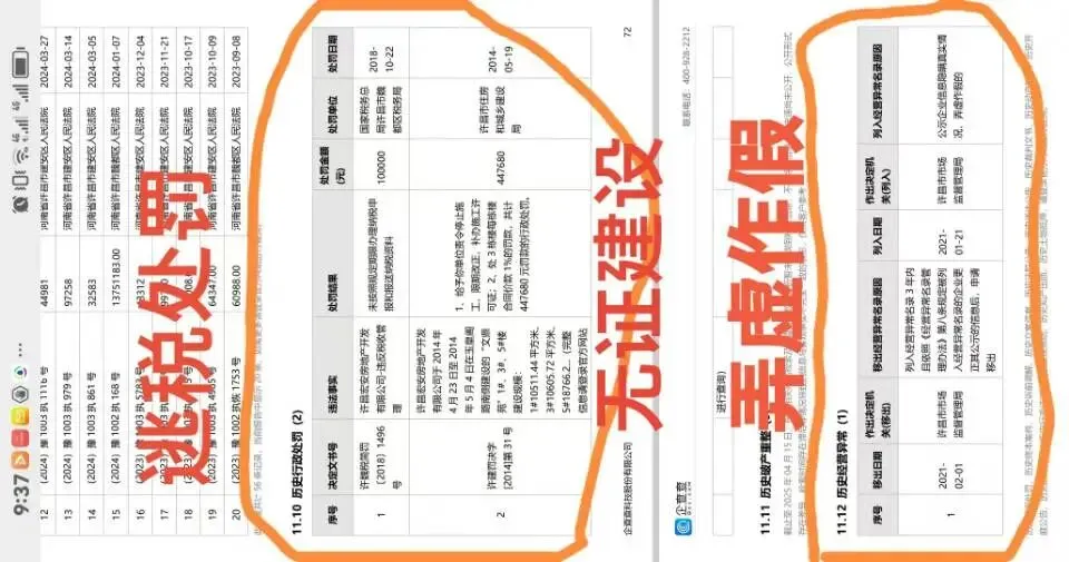 不动产权证书这个链条的最顶端和最基础的环节,就是“合法取得土地使用权”。如果这个“地基”违法,那么建立在其上的所有后续许可和登记都成了“空中楼阁”,失去了合法基础。(下图为许昌宏安房地产开发商企业征信报告其中一页显示)