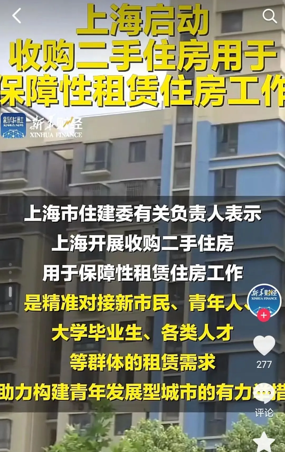 真的没想到呀,上海一线城市都已经提出来要收购二手房,收购的二手房用于保障性租赁住房。