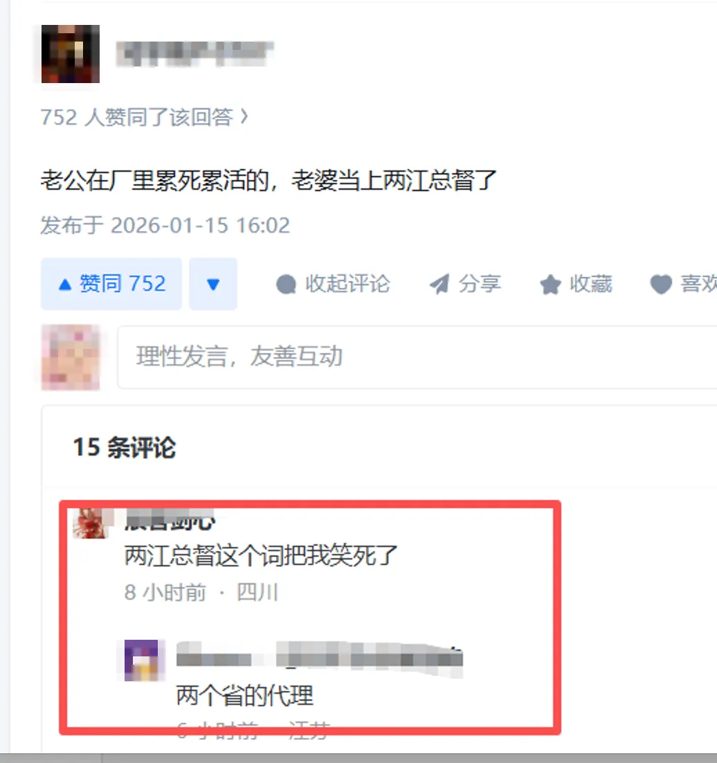 被网友调侃:丈夫在外面工厂打工,老婆在家当上了“两江总督”
