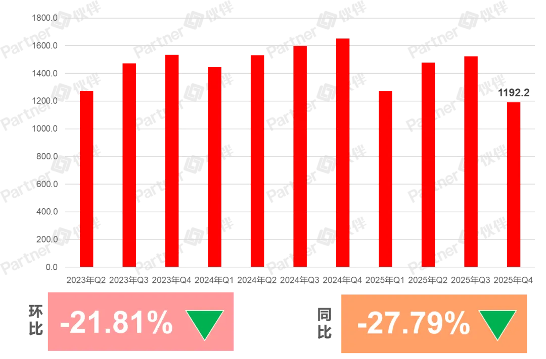 市场成交量:2025年第4季度租赁厂房总成交量1192.2万㎡,环比下跌21.81%,同比下降27.79%