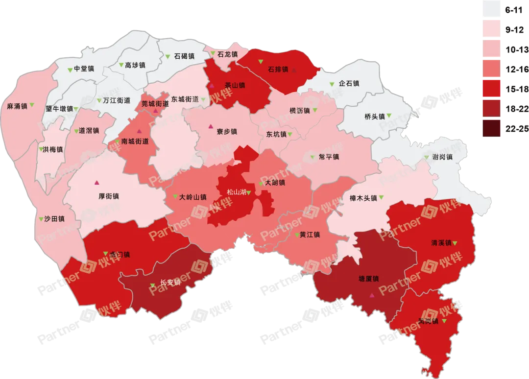 大朗、高埗等镇街下跌明显,石龙有明显提升