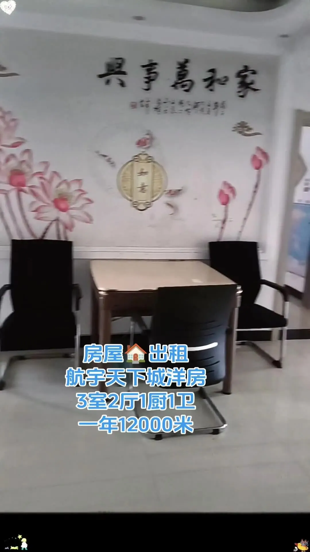 房屋详情:出租 航宇天下城3室2厅室1厨1卫电梯东户南北通透,家具家电齐全,拎包入住,年租1万2有钥匙