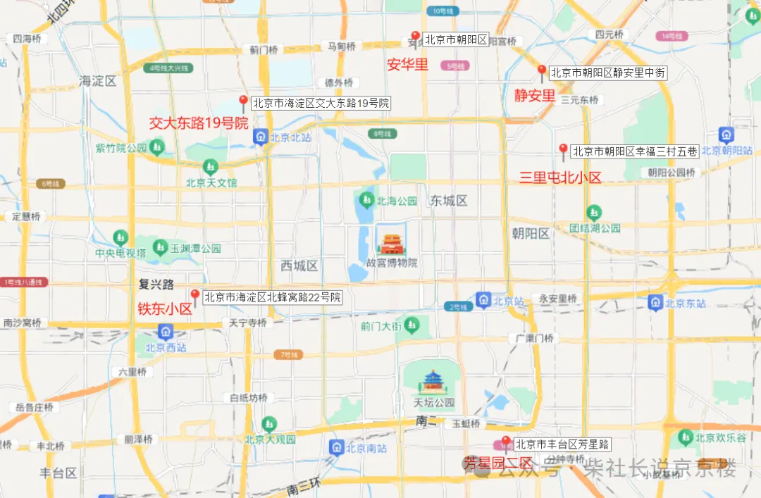 下图是柴社长在历史文章《北京二环老破小租售比逆天!碾压四大行定存利率》中给大家列举的北京二三环高租售比小区位置 ↓