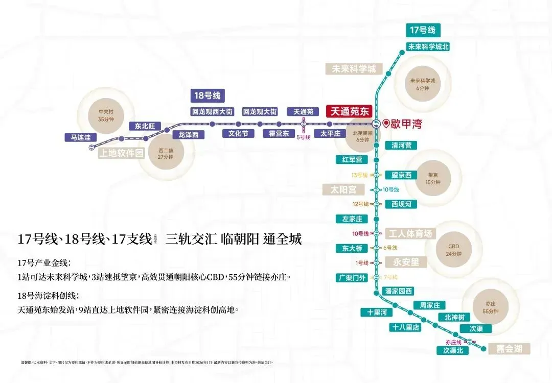 17号线1站未来科学城,3站直达望京西站约15分钟、7站直达工体约28分钟,9站直达永安里国贸CBD约35分钟;