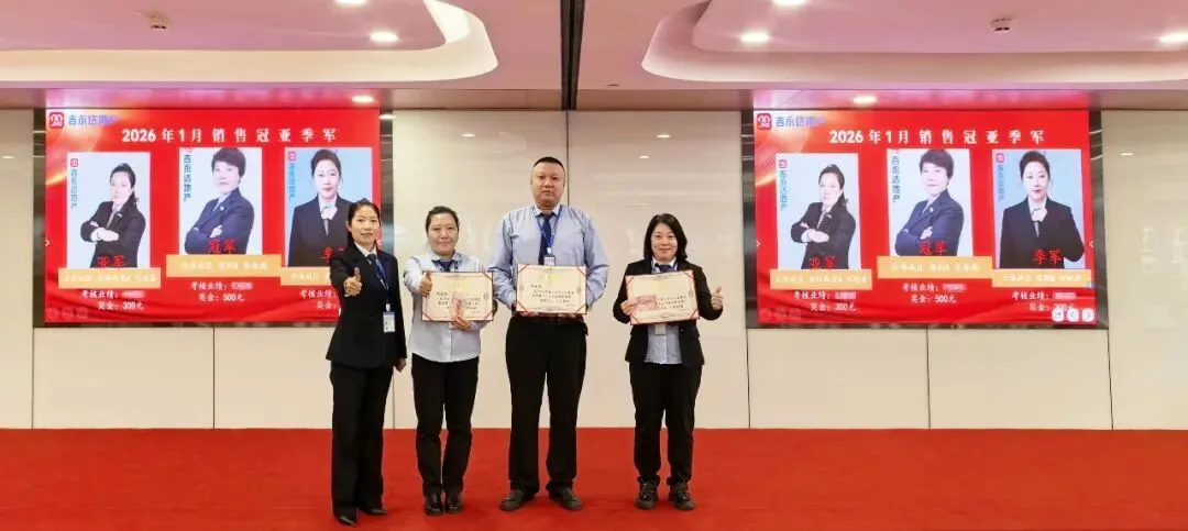 2026 年 2 月 4 日,吉永达地产一月员工表彰大会圆满完成。大会总结了上月成果,表彰了先进典型并正式吹响了新年奋斗的号角。迎新环节,新入职的家人们怀揣热忱登台,分享了加入吉永达大家庭的初心与憧憬。台下此起彼伏的掌声瞬间拉近了彼此的距离,这份双向奔赴的温暖诠释了吉永达 “以人为本、聚力共赢” 的团队理念。