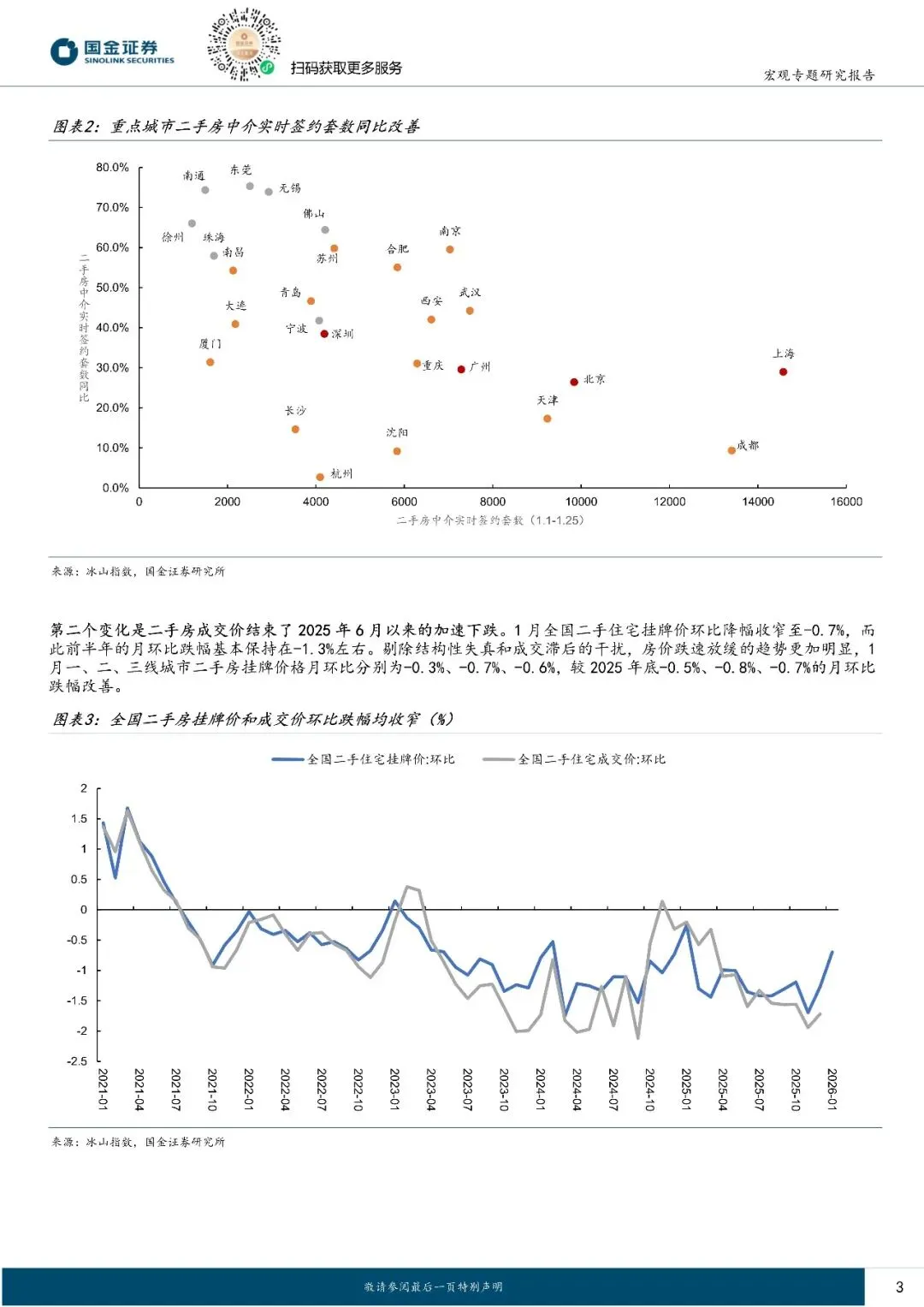 2026 年开年以来,房地产市场在“量”“价”两个方面出现了积极变化,第一个变化是重点城市二手房成交持续放量,第二个变化是二手房成交价结束了 2025 年 6 月以来的加速下跌。