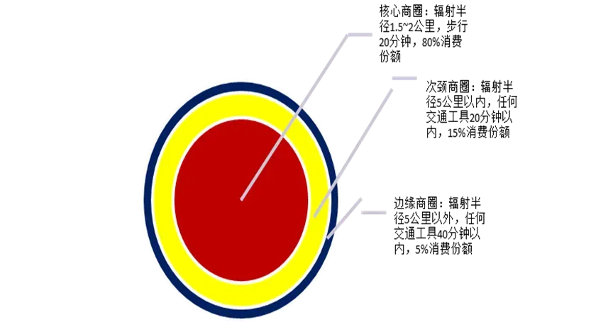 通常在实操定位之中,我将商圈按照距离模式进一步分为三层: