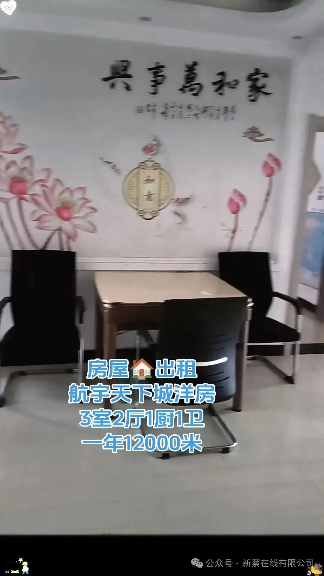 房屋详情:出租 航宇天下城3室2厅室1厨1卫电梯东户南北通透,家具家电齐全,拎包入住,年租1万2有钥匙
