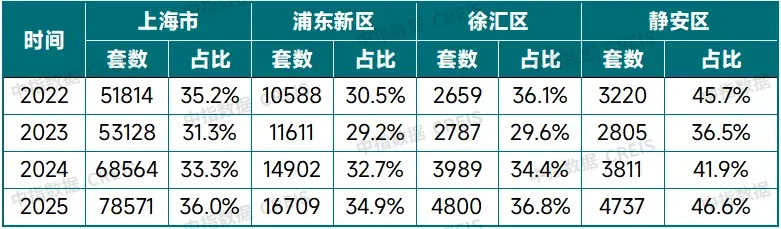 分区域看,2025 年该类二手房成交中,浦东新区以 1.7 万套的成交量位居全市首位;徐汇区、静安区分别成交 4800 套、4737 套,该类房源占两区二手房成交总量的比重达 36.8%、46.6%,均高于全市 36% 的平均水平。三区合计成交 2.6 万套,同比增幅达 15.6%。此次上海新政落地,或进一步加速三区该类总价、面积及楼龄区间二手房的去化进程,为全市二手房市场有效发挥托底作用。