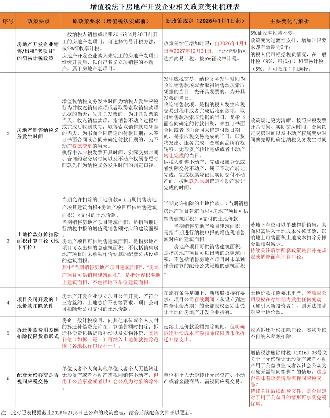 >增值税法下房地产开发企业相关政策变化梳理表260205