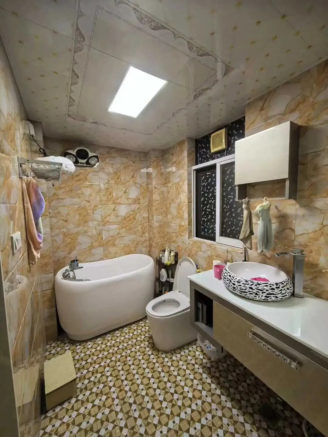 粤海新区步梯平台顶5楼196㎡,5房2厅4卫(3个套间),中式装修,东南向,跃式格局,有契,售95.6万,电梯签名好