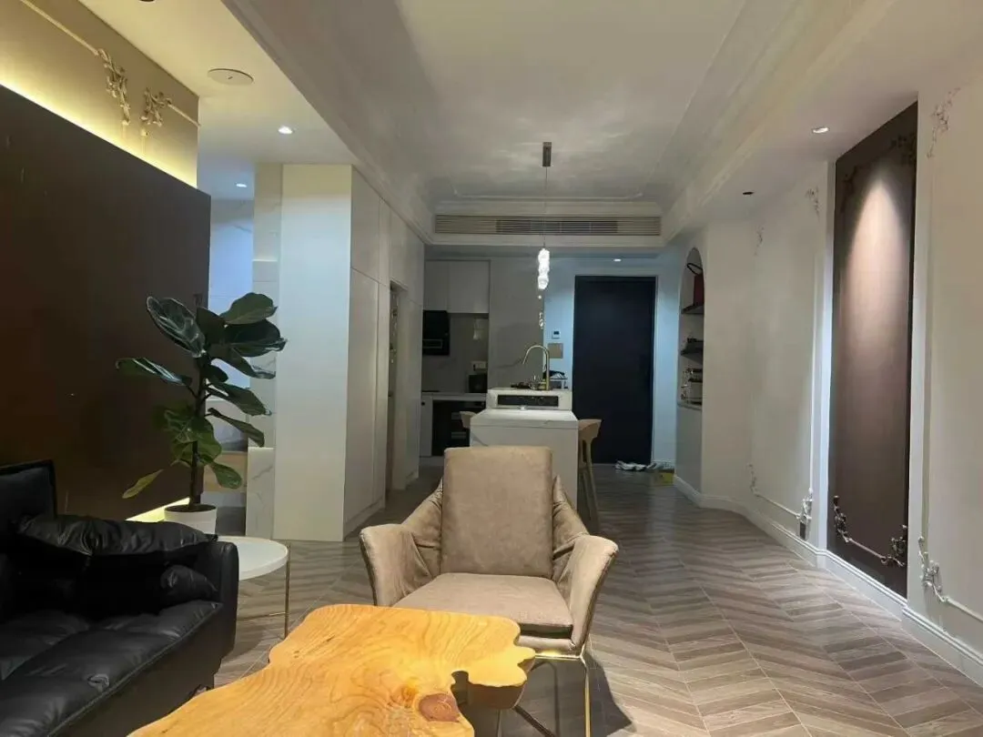 龙光阳光华府中高层约90㎡,2厅2卫,隔1房,新雅装修,家具家电齐全,拎包入住,设计岛台,售80万 有图
