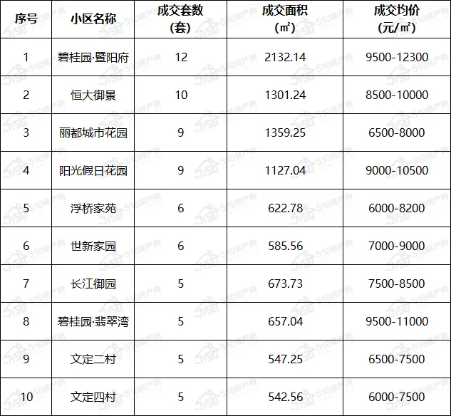 这十个小区成交靠前