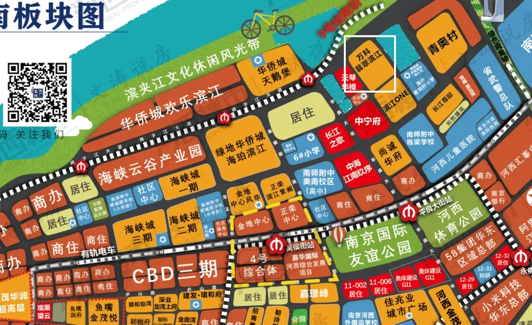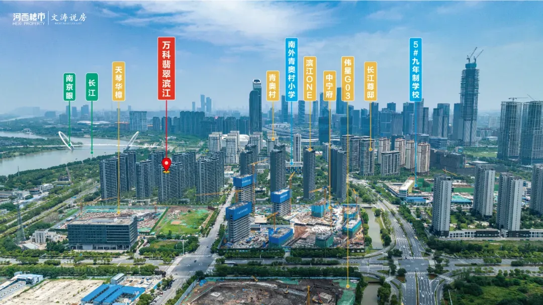 万科翡翠滨江项目位于青奥滨江板块,旁边汇集了河西南诸多豪宅,如长江尊邸、滨江ONE,以及新项目中宁府、天琴华樟、长江之歌、中海江南玖序。