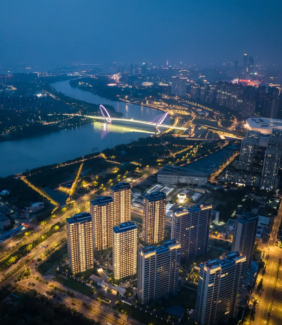 从空中感受一下万科翡翠滨江的夜景视角,从青奥远眺江岛,南京眼、双子塔、滨江公园……能够看出别样的美感。↓↓