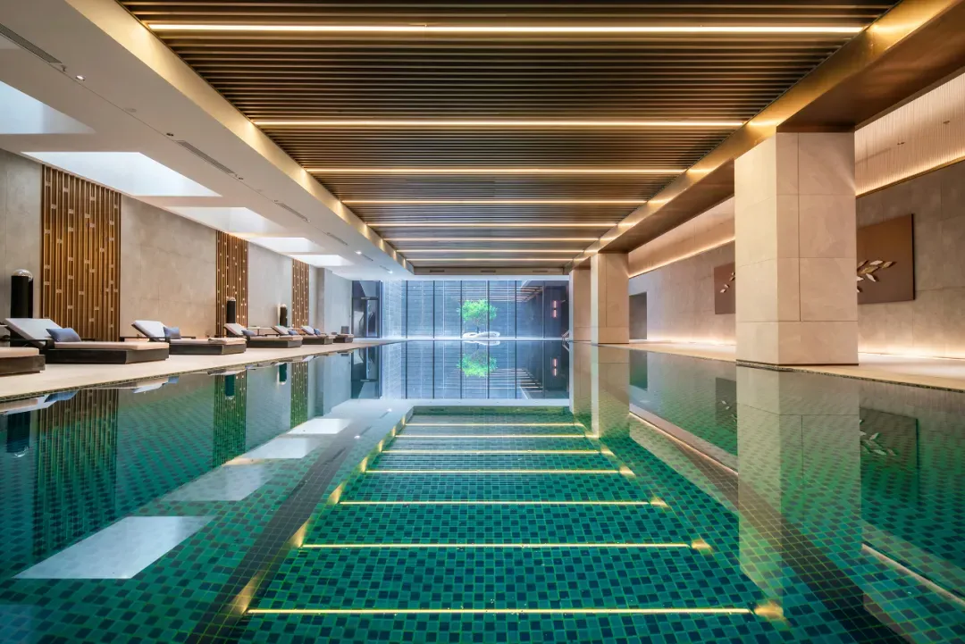 圆形水景的背后,是翡翠CLUB。万科翡翠滨江,为南京万科首个社区CLUB的运营服务,内部配置恒温泳池、瑜伽室、健身房等配套设施。↓↓