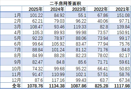 2025年全年网签套数10.8万套,网签面积1078万方。
