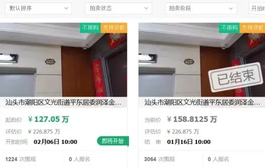 起拍价:131.32万元/套,保证金:26.26万元/套,增价幅度:6566元/套