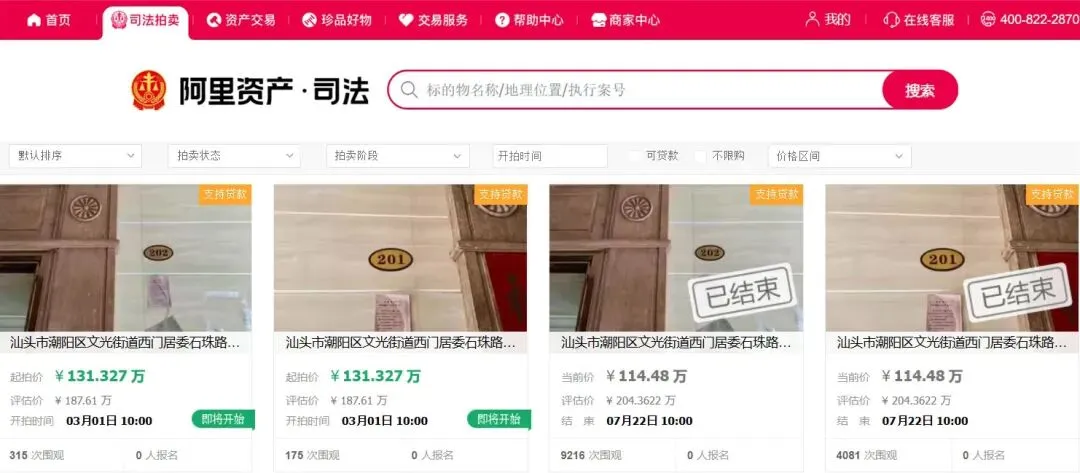 1.以上标的物的详细信息及更多标的物信息,请登录淘宝阿里拍卖(https://zc-paimai.taobao.com/)、人民法院诉讼资产网(www.rmfysszc.gov.cn)汕头法院司法拍卖专场。