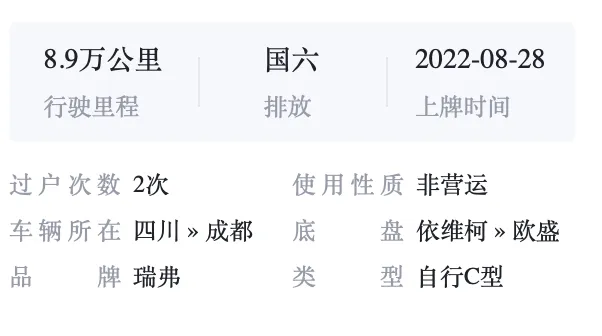 【过户情况】:过户两次,非营运