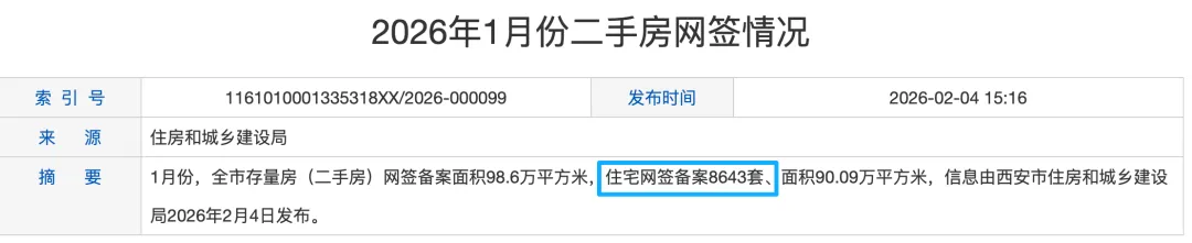 和2025年12月相比,1月的二手房住宅网签量环比上涨3.33%,而和2025年1月(春节假期)同期6048套相比,涨幅为42.91%!
