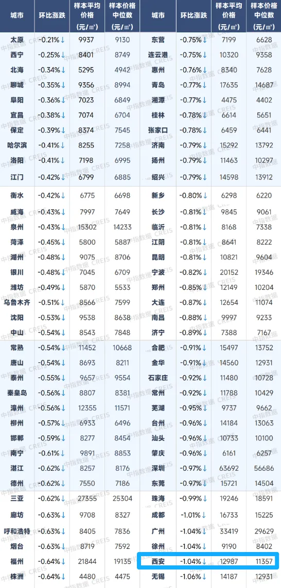 中指研究院数据《百城价格指数报告》显示,2026年1月西安二手房价格环比下跌1.04%。