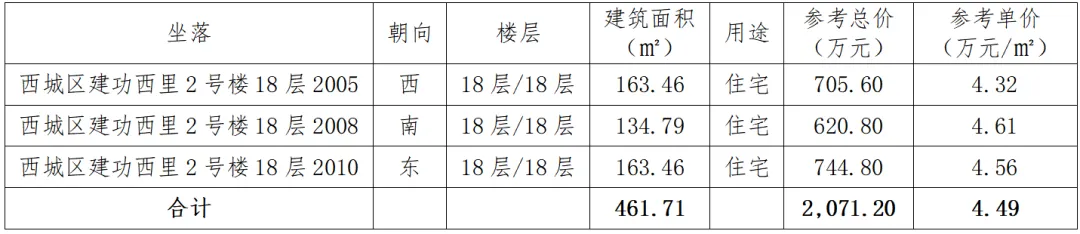 1、转让标的:位于北京市西城区建功西里2号楼(天缘公寓B座)18层2005号、2008号、2010号三套房产,具体如下: