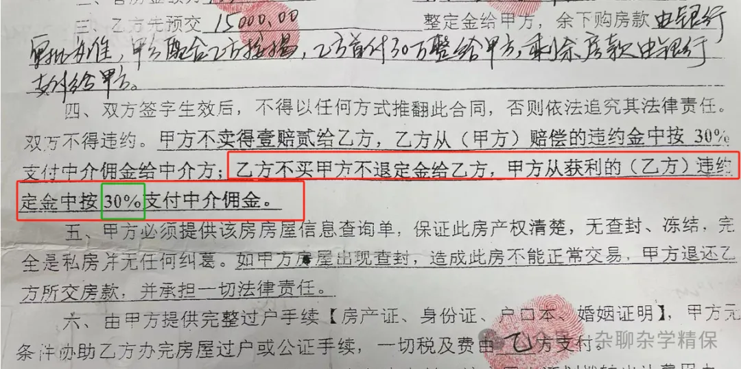 原来,买方毁约,我们按照合同约定也得支付大姐定金的30%作为她的中介费……