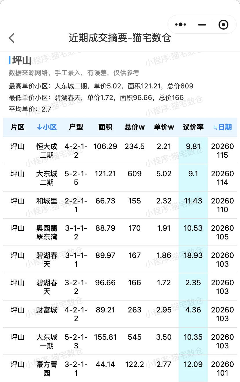一些数据说明:数据来源机构提供、私单录入、三方网络平台、群友提供、部分业主补充等,收集比较繁琐,一些数据在excel处理过程由于格式转换或者其他格式的来源处理转换的过程中,可能会出现误差,比如小区名的错别字、单价误差,作者已经纠正一批, 若发现错误数据,请在公众号后台私信或者留言纠正。数据大部分是住宅,可能存在一些商用、公寓、双拼、高评数据,注意甄别,若有疑问可以留言。最后整体数据不是全部的,仅为部分数据,数据整体不构成买卖建议,若有疑问依然可以单独留言。