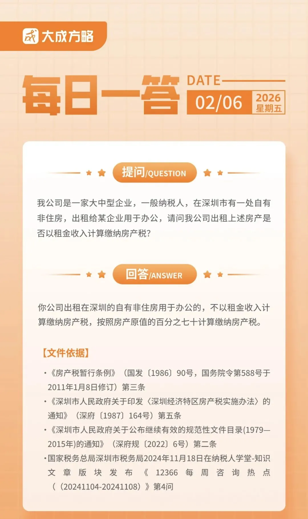 >【答疑】公司出租房产是否以租金收入计算缴纳房产税??2026.2.5