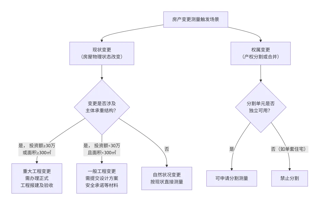 下面的流程图清晰地说明了在什么情况下会触发房产变更测量,以及其核心应用场景: