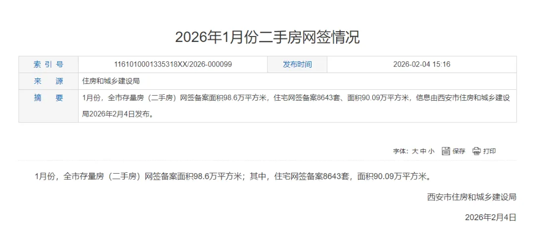 2月4日,西安市住建局官方发布1月二手房网签数据,一组数字直接点燃市场情绪——二手住宅网签8643套,同比暴涨42.9%,环比微增3.34%!要知道2025年1月还是全年成交低谷,如今强势反弹,是不是意味着西安二手房市场真的回暖了?