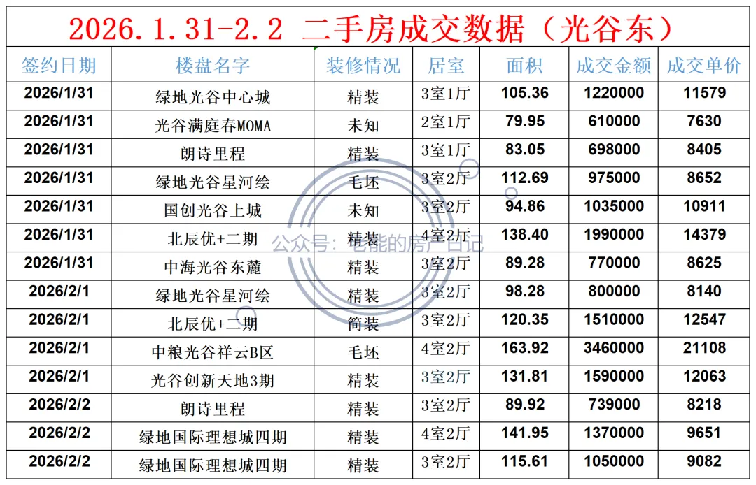 2026.1.31-2.2 二手房成交数据 (光谷东)