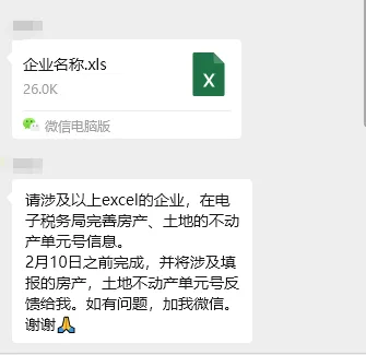 税管员通知电子税务局上完善房产、土地的不动产单元号信息.