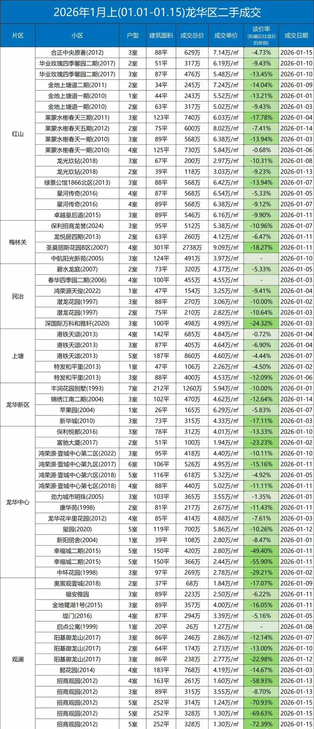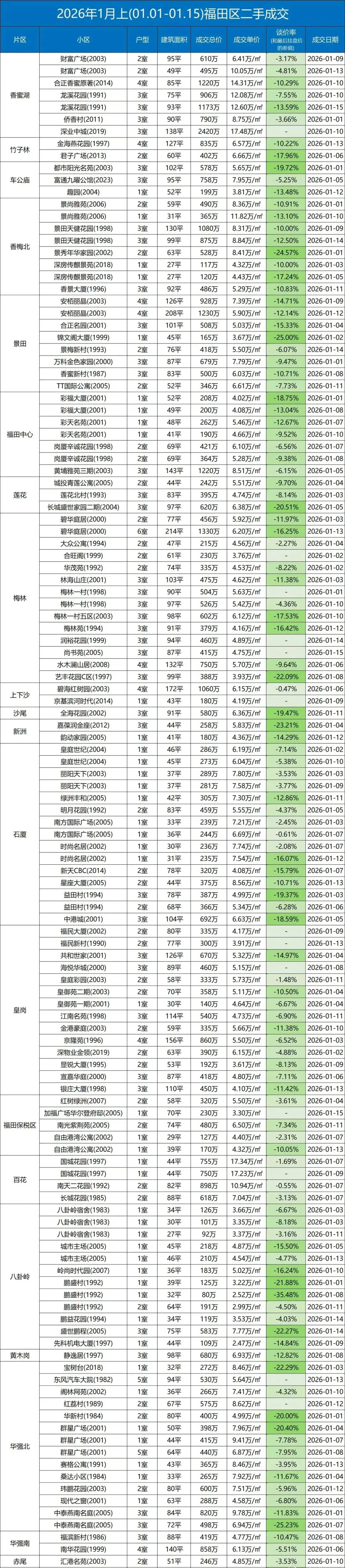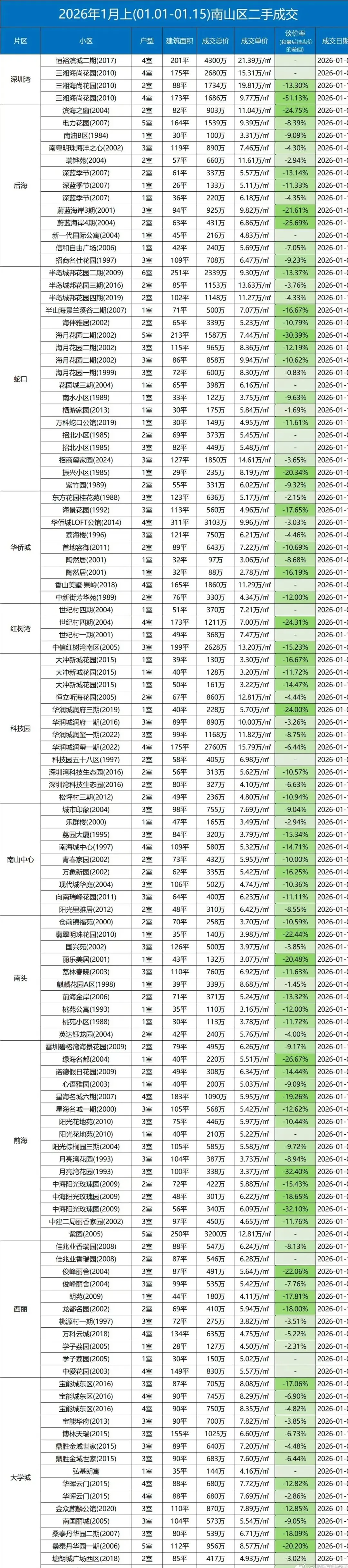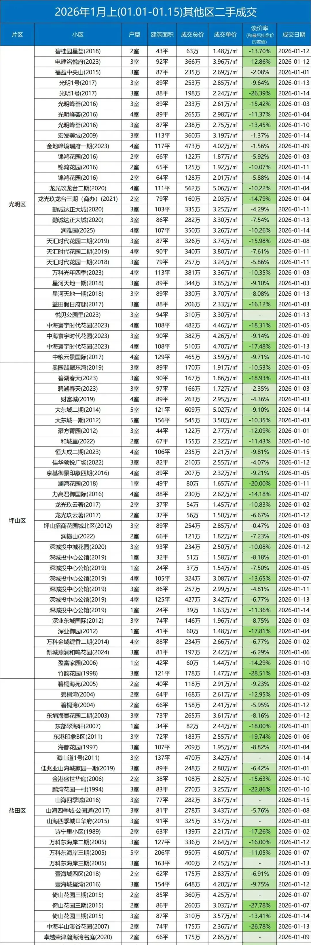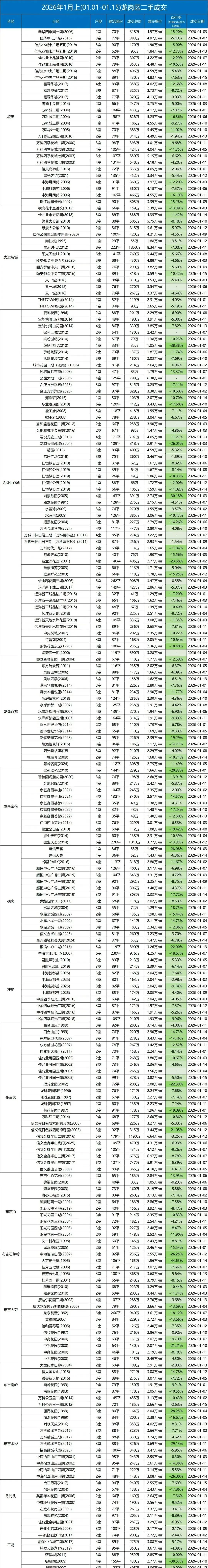 >2026年1月上,深圳各区二手房交易数据,看看你想买的房降到位了吗?