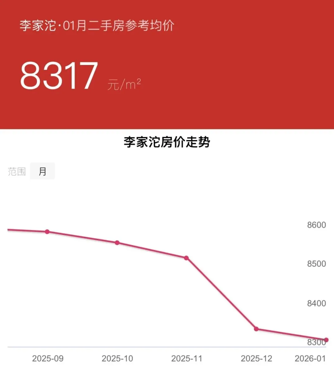 比如,李家沱,1月份二手房参考均价为8317元/平米。
