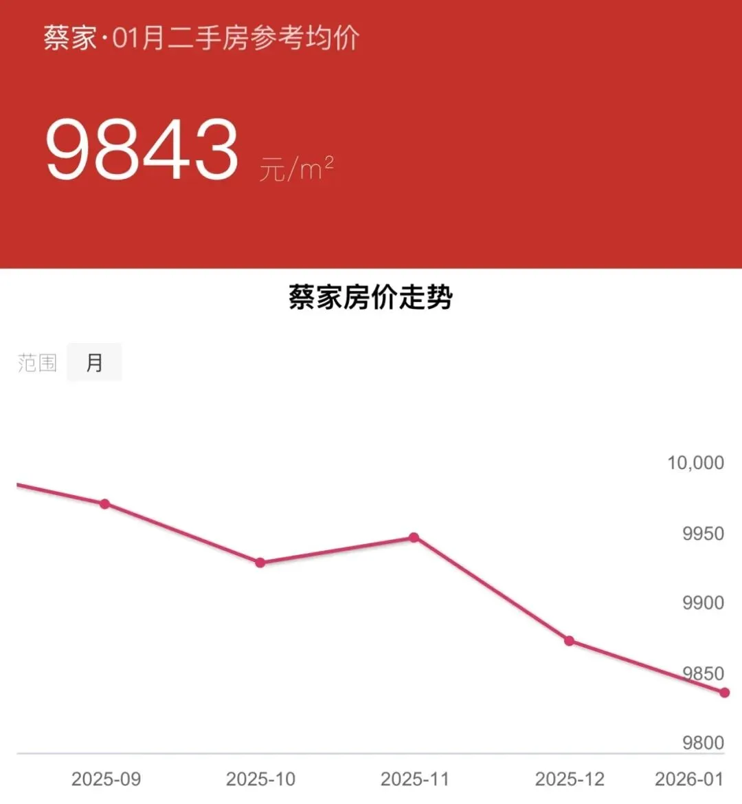 茶园板块,1月份二手房参考均价为11065元/平米。