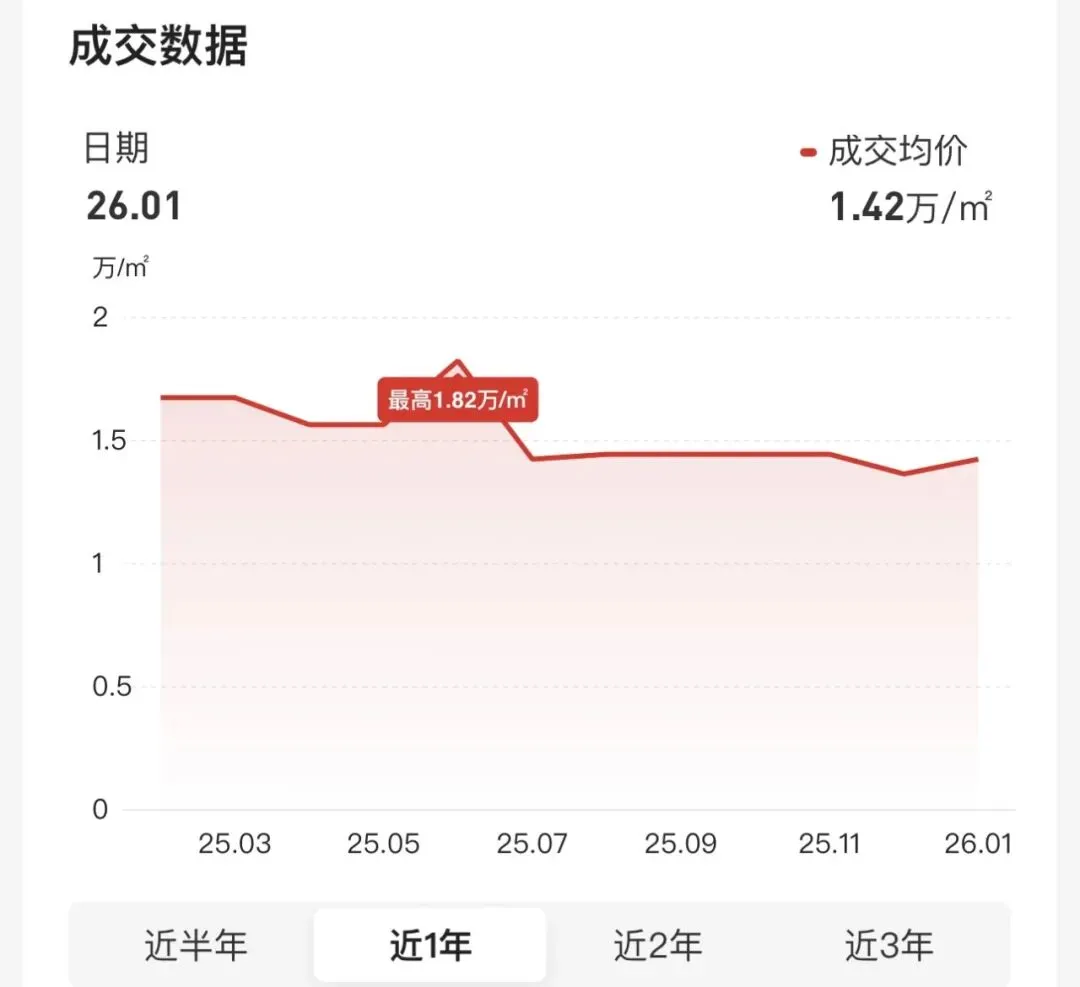 近两年的成交均价为14200元/平米,最高时达到了18200元/平米。