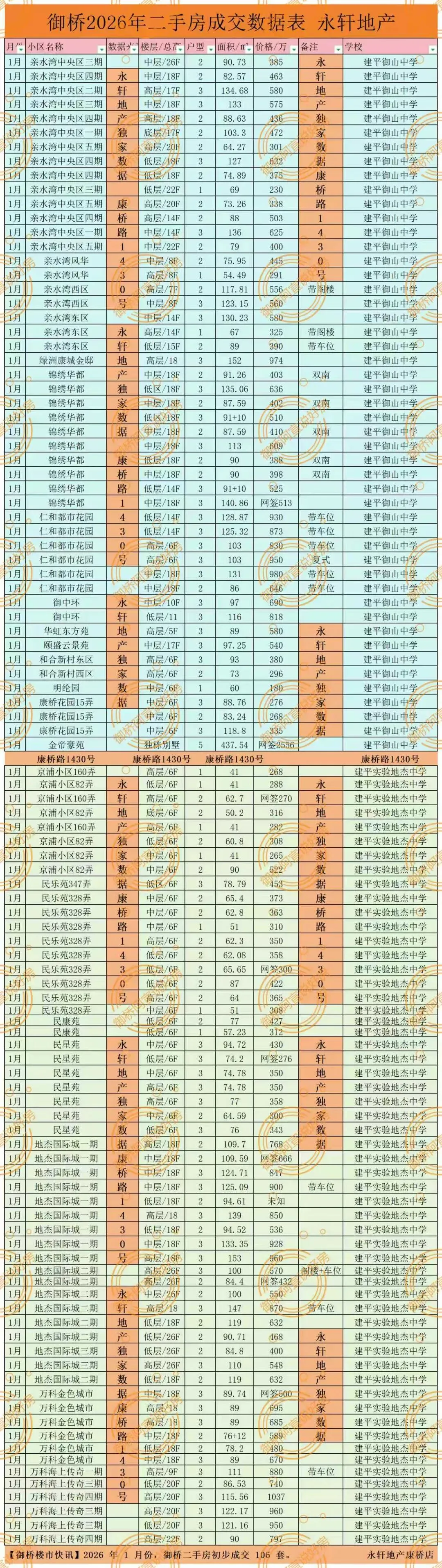 御桥板块2024年1月二手房成交数据出炉,单月成交量突破100套,成为近期市场一大亮点。在整体市场低位运行的背景下,这一成绩显著优于上海多数板块,表现突出。成交均价维持在约6万元/平方米,价格相对稳定,凸显了该区域以“高性价比”吸引刚需及改善客户入市的特征,显示出坚实的市场支撑力。