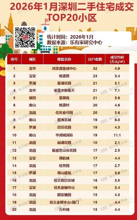 在2026年开年的深圳房地产市场画卷中,二手住宅市场的表现备受瞩目。乐有家研究中心精心盘点的数据,为我们揭示了1月深圳二手住宅过户量TOP20小区的风云变幻,这些数据不仅反映了市场的动态,也为购房者提供了极具价值的参考。