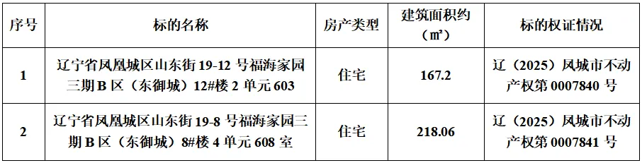 受国有大型企业委托,我公司将于2026年3月14日15时至3月15日15时(延时的除外)在京东国资拍卖厅采用网络拍卖的方式公开拍卖位于辽宁省凤城市凤凰城区山东街两处房产,建筑面积分别约167.2㎡、218.06㎡。