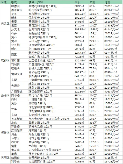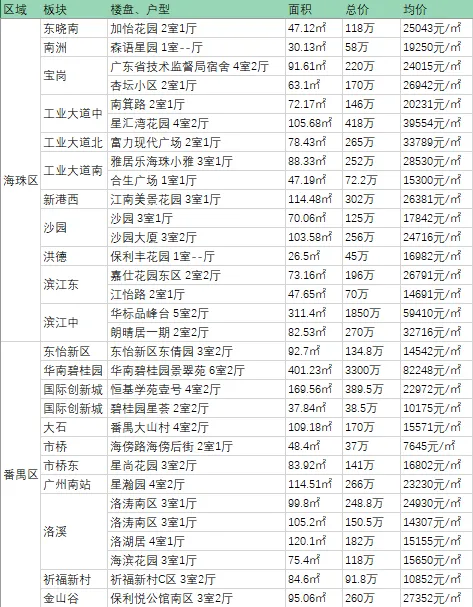 如果你手头有200万,有哪些板块楼盘可以选择,可以参考下面最新一期的二手房成交价格数据