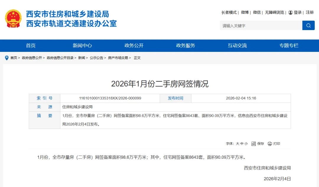 1月份,全市存量房(二手房)网签备案面积98.6万平方米;其中,住宅网签备案8643套,面积90.09万平方米。