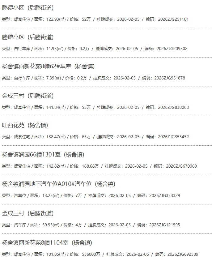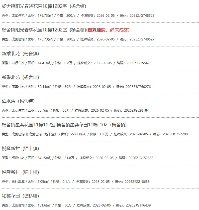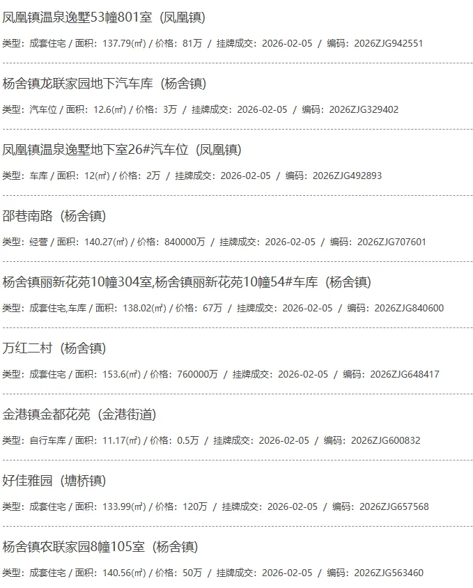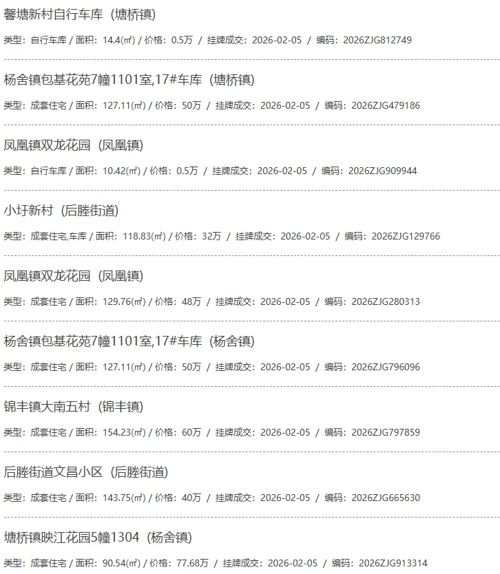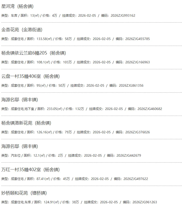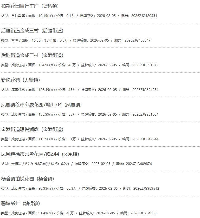 根据张家港房产网(www.zjgzf.cn)整理,(2026-02-05至2026-02-05)总共60套二手房网签挂牌成交(含自行车库及汽车库),数据根据住建局官方网签平台整理,并已同步至各对应小区的成交明细,特别提醒:此处数据及各小区成交数据中凡标注(来自网签挂牌)的,均是根据政府网签挂牌系统整理,价格可能不准,请谨慎采信;并仅作为您买房卖房的参考而非决定依据。以下为数据明细: