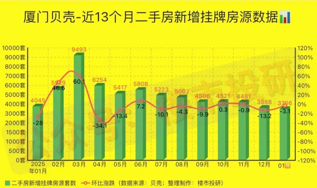 一、2026年01月,厦门贝壳平台二手房相关数据一览: