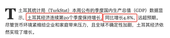 > GDP增长持续向好:土耳其经济实现连续20个季度正增长,2025年GDP同比增长4.8%,涨幅大幅超出市场预期。