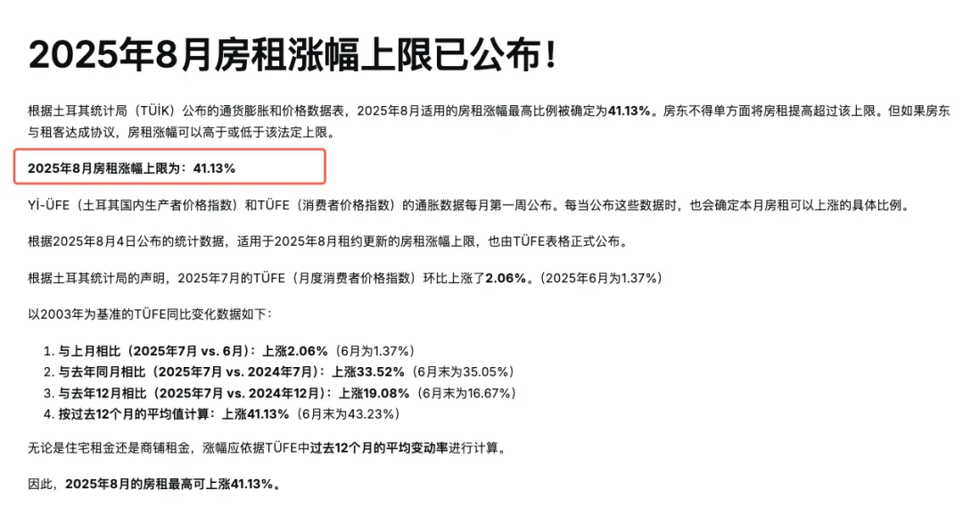 > 租金收益有法律保障:2025年8月土耳其政府发布官方政策,将租金涨幅上限设为41.13%,从法律层面为通胀环境下房东的现金流收益筑牢防线。