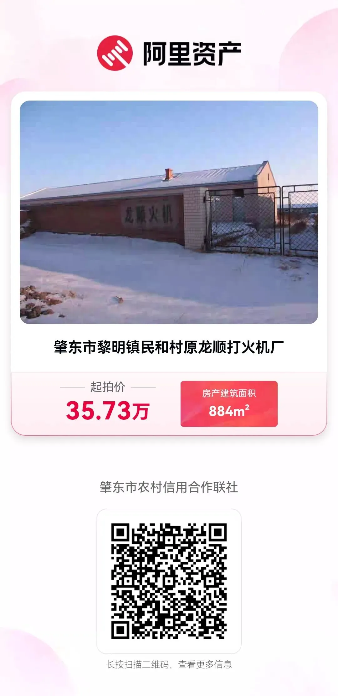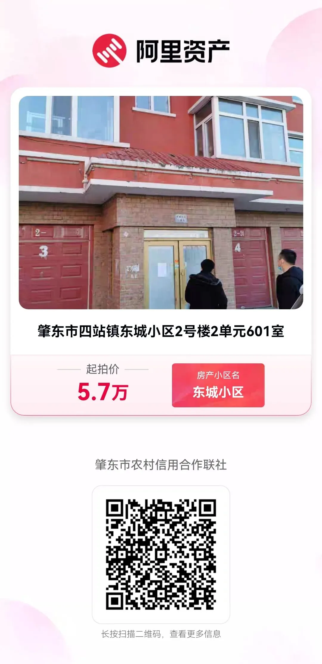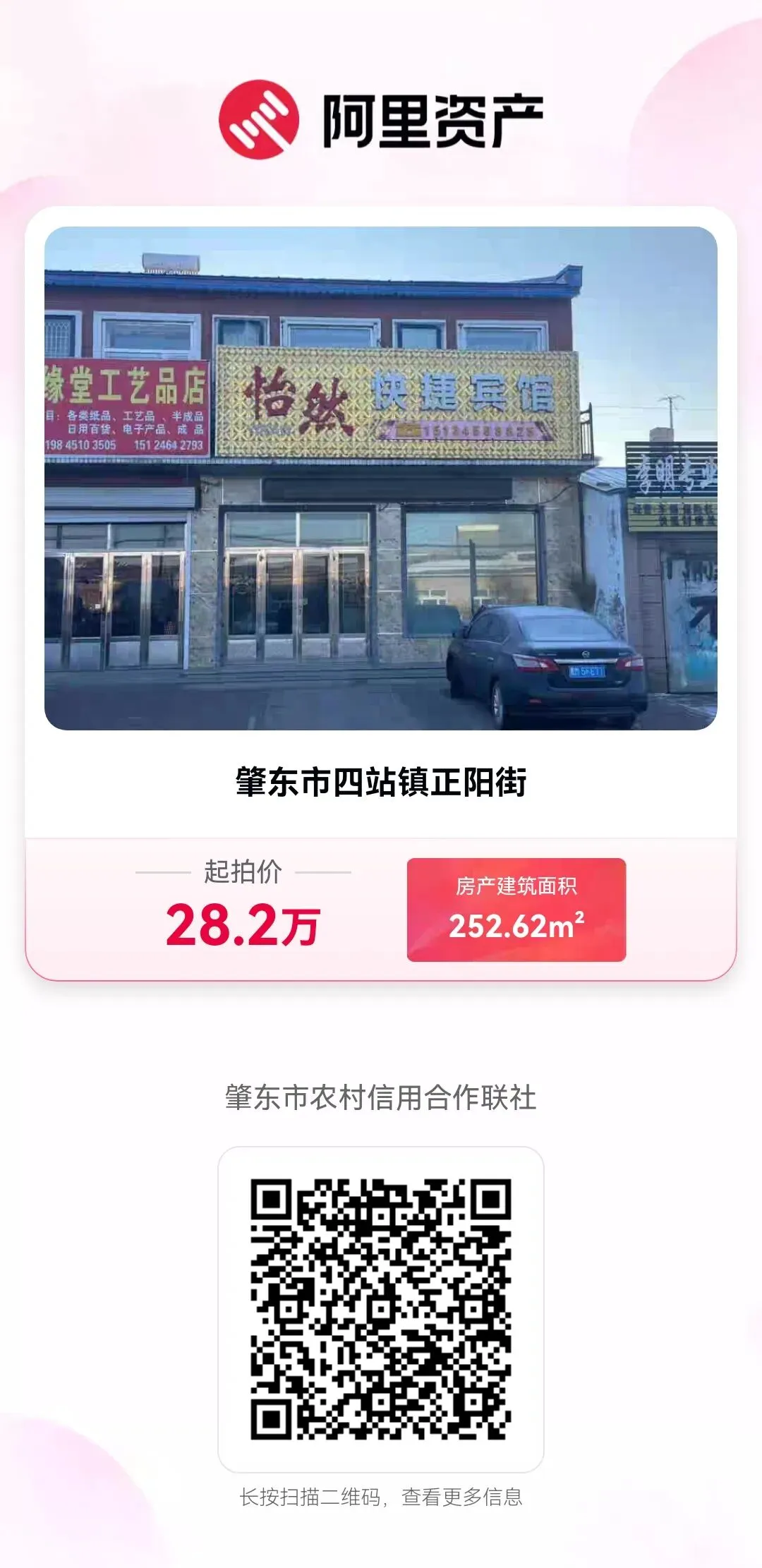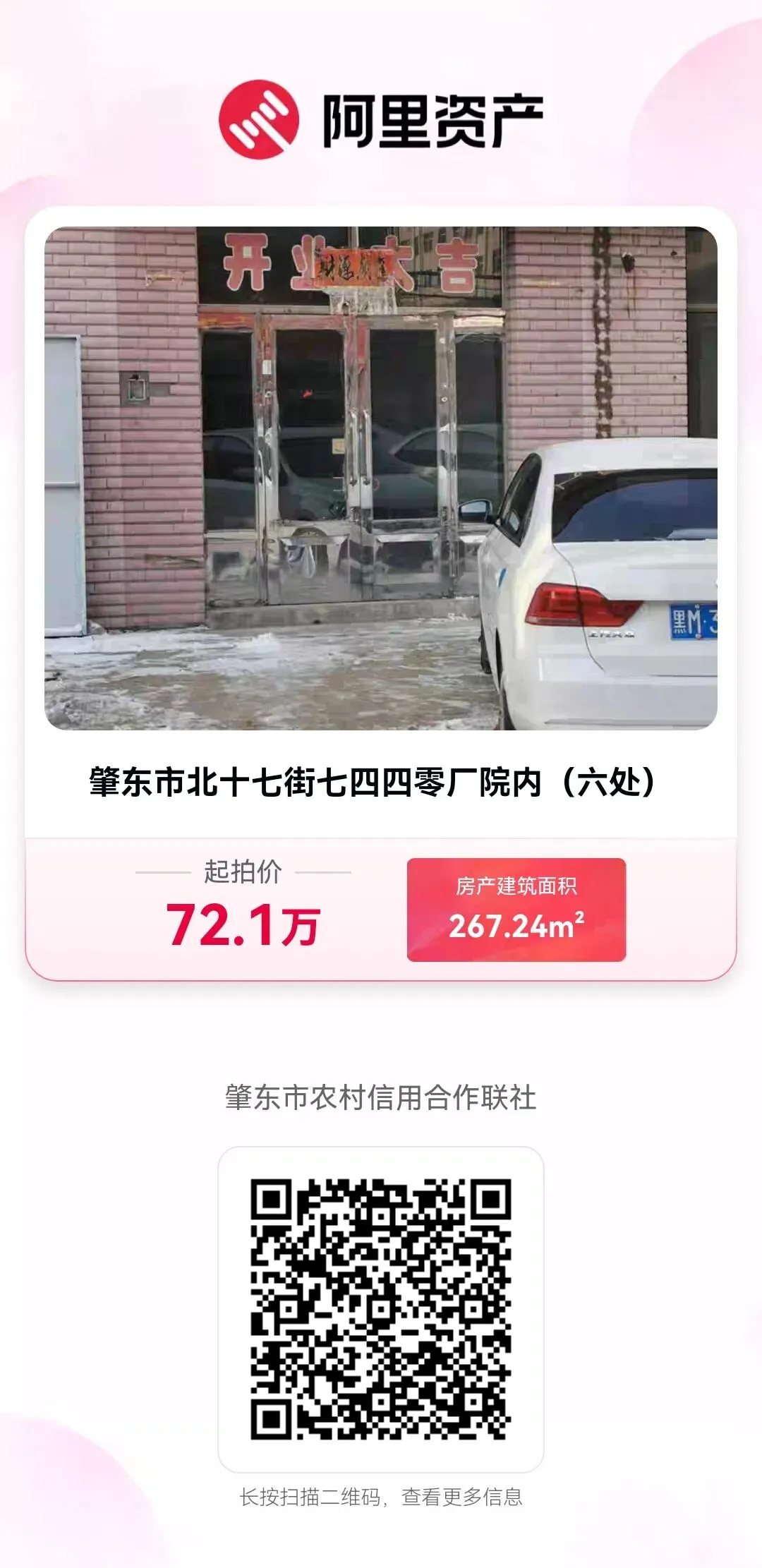 肇东市农村信用合作联社定于2026年2月10日10时至2026年2月21日11时在淘宝网阿里拍卖对房产类抵债资产进行公开竞价出售,资产详情及相关事项请扫描登录平台查询。