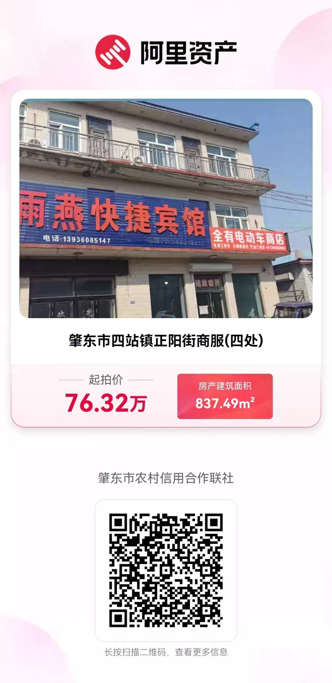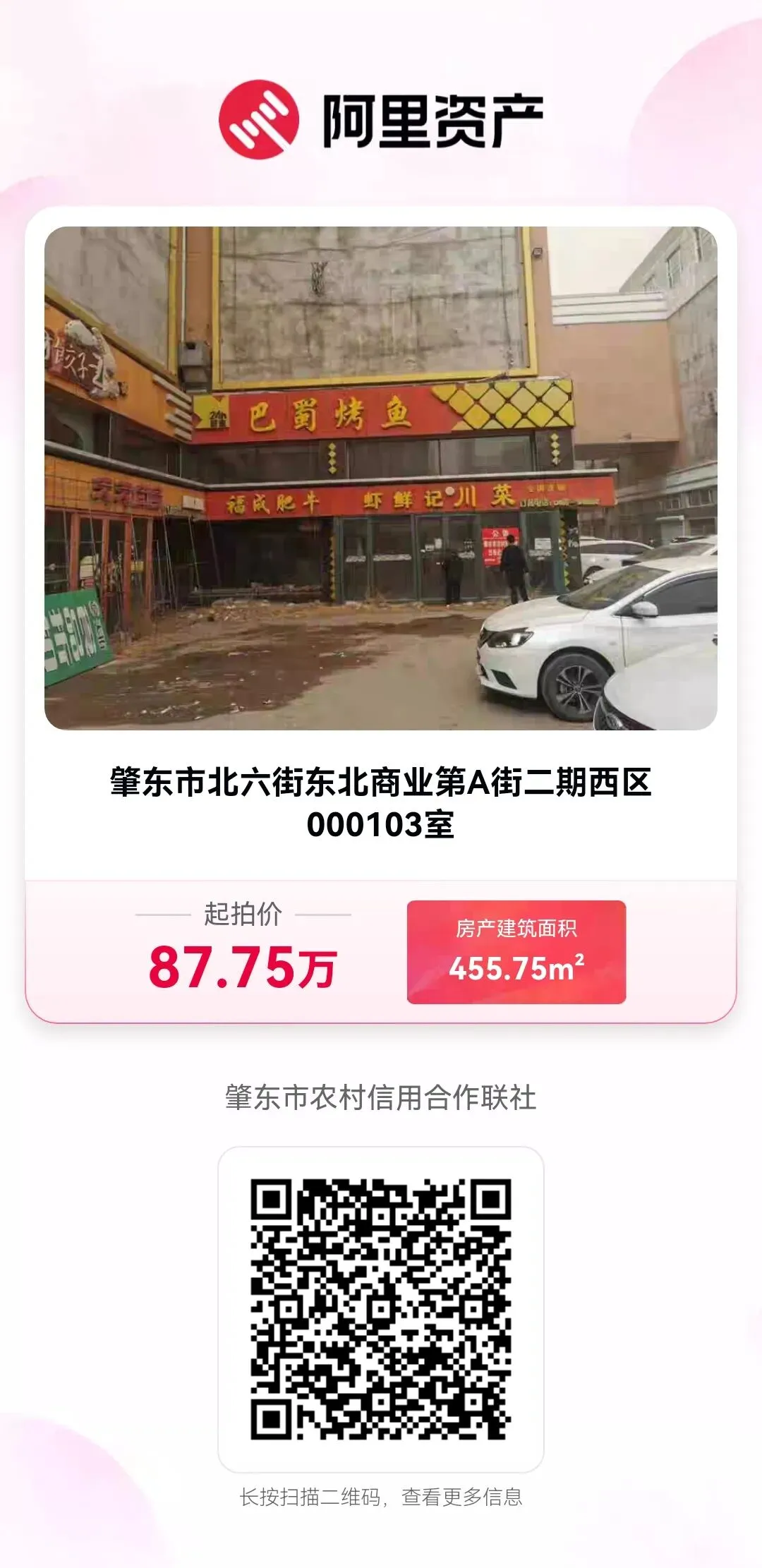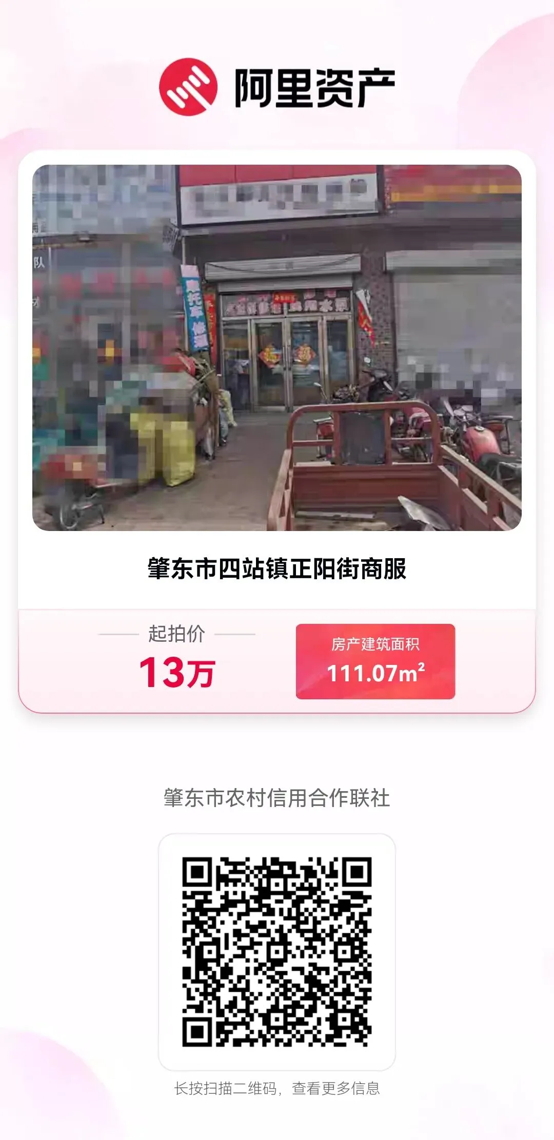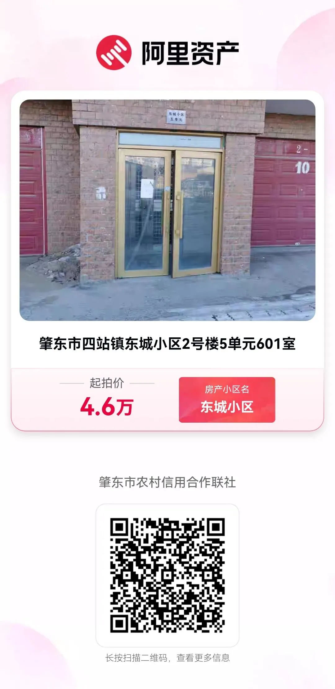 肇东市农村信用合作联社定于2026年2月10日10时至2026年2月21日11时在淘宝网阿里拍卖对房产类抵债资产进行公开竞价出售,资产详情及相关事项请扫描登录平台查询。